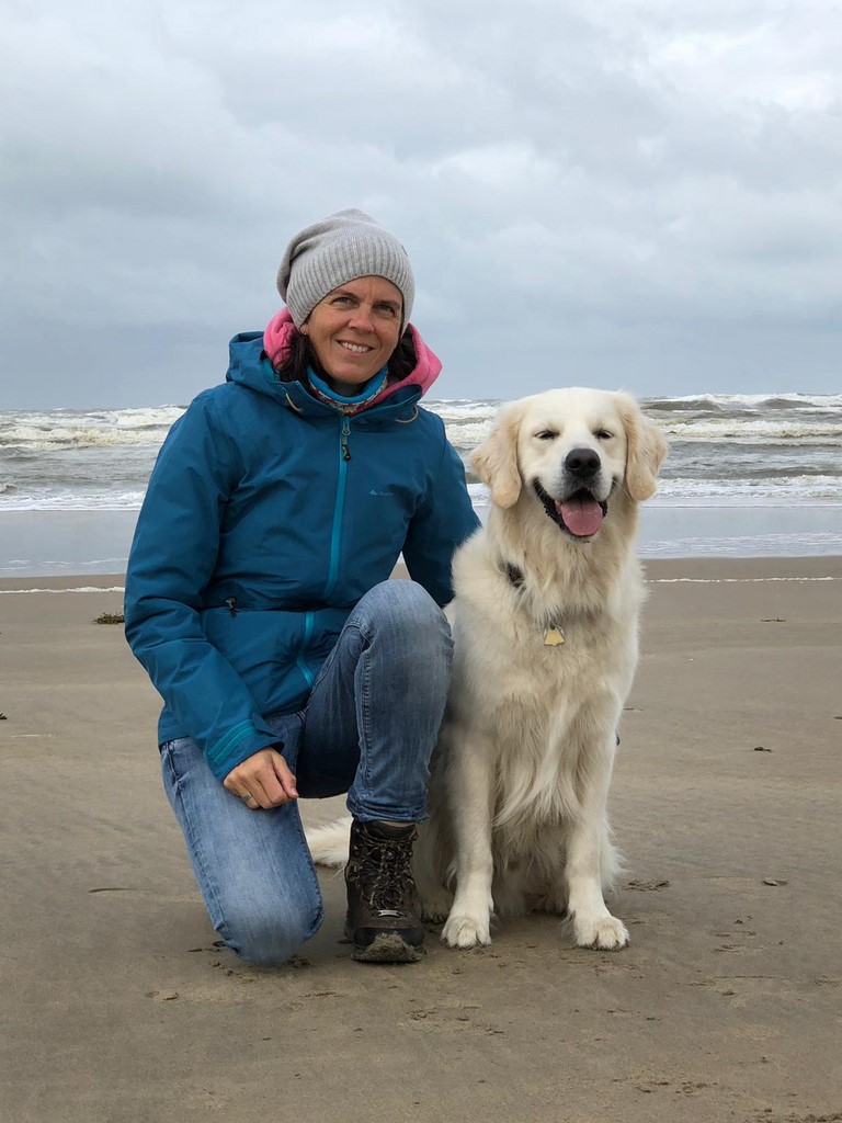 Theo ist der private Hund der Lehrerin Christiane Wiemer.